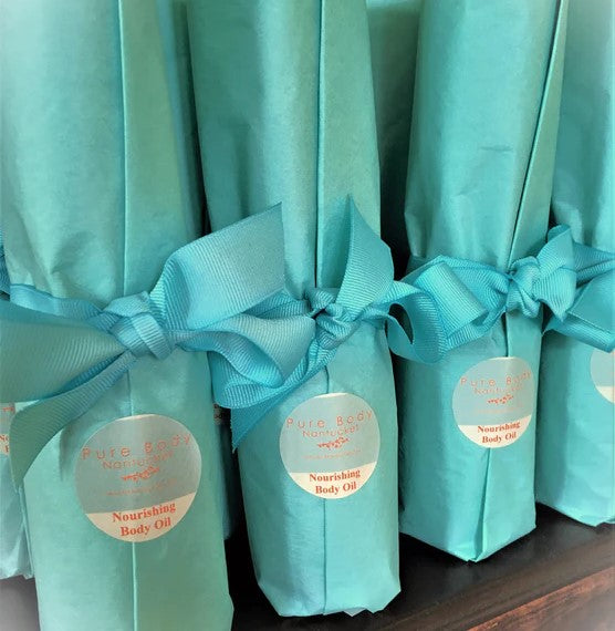 Your recipient will thank you! As Mentioned in Goodspeed Magazine" and Daily Mom, our best selling product and the one we can just about keep in stock...Pure Body Nantucket Nourishing Body Oil AKA "Sunshine in a Bottle". Unlike other body oils, this one absorbs quickly on the skin leaving it beautifully soft, moisturized and revitalized without any greasiness. The special blend of essential oils were chosen for their gorgeous uplifting aroma.